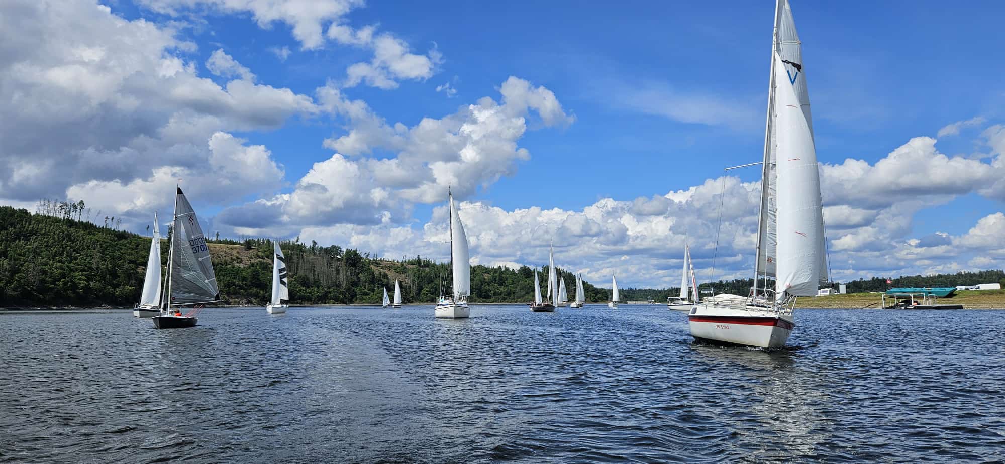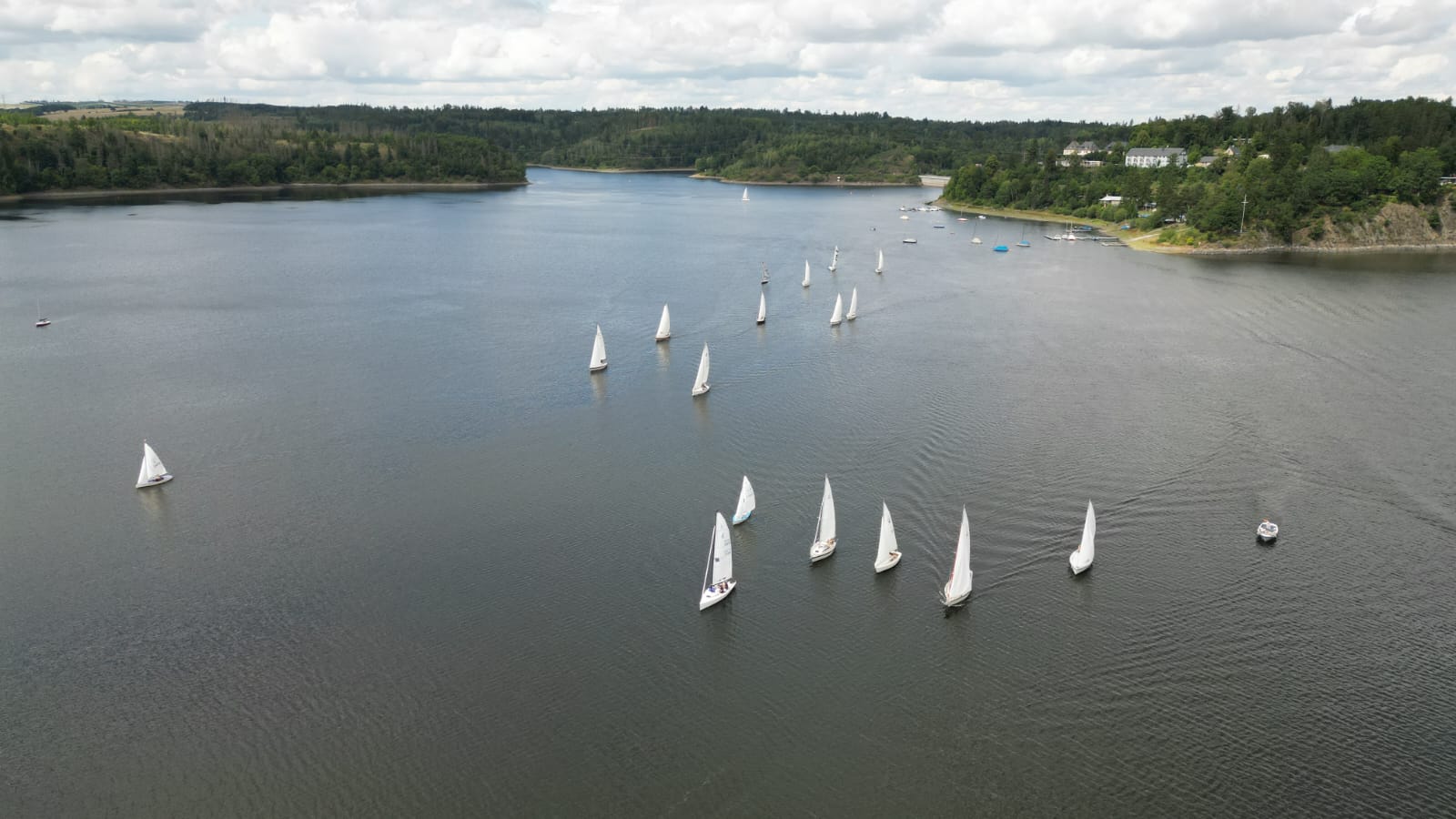 Der Wind blieb für Talsperrenverhältnisse recht gleichmäßig, so dass einige Boote mit Gennaker im Zielhafen Bleiloch mit guten acht Knoten auch noch Freude an der Geschwindigkeit hatten.